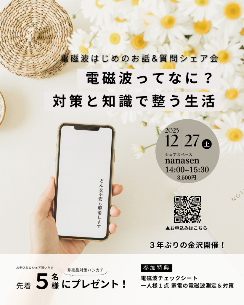 【金沢】電磁波はじめのお話会&質問シェア会 「電磁波ってなに?対策と知識で整う生活」